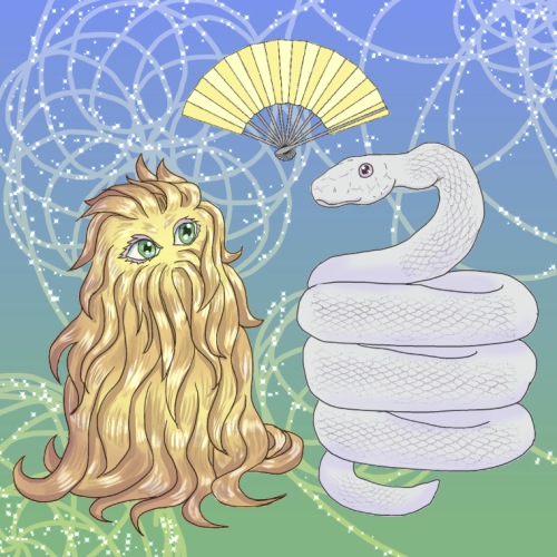 深森は白蛇(はくじゃ)で蒼空横丁に住んでいる編集者です。扇子を大事にしています。毛羽毛現(けうけげん)とは師弟関係です。