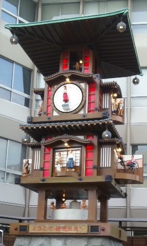 鷺伝説のあるお土地柄の故か、屋根の上には白鷺の作り物があり、「お神輿っぽいな」と思ったのもご愛敬。近所の別の一角には「からくり時計」があり、『坊ちゃん』を題材にしたショータイムを楽しませて頂きました