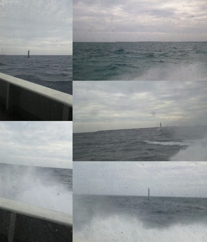 八重山の海…、荒天でもなおエメラルドグリーンに輝く海がずっと広がっているのが、とても印象的でした。海のど真ん中に、海上保安庁が管理している航路標識の柱(赤色や緑色の灯標)が「いきなり」立っていたり。さすが珊瑚礁の島々であります。遠浅の海、何処かの岩礁に船が引っかかると困る訳で…
