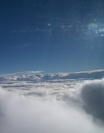 この写真で最後です。低気圧の中では光が足りず写真撮影はしませんでしたが、雲が形作る奇妙な光景が展開して目を丸くしました。灰色の綿で出来たキノコみたいなものが何本も立っていて、まるで何処か見知らぬ惑星の幻想オブジェっぽい洞窟の中みたいでした。そして9000メートルもの高い空では、一面の雲海と陽光とが相まって、神秘的な光景が広がっておりました^^