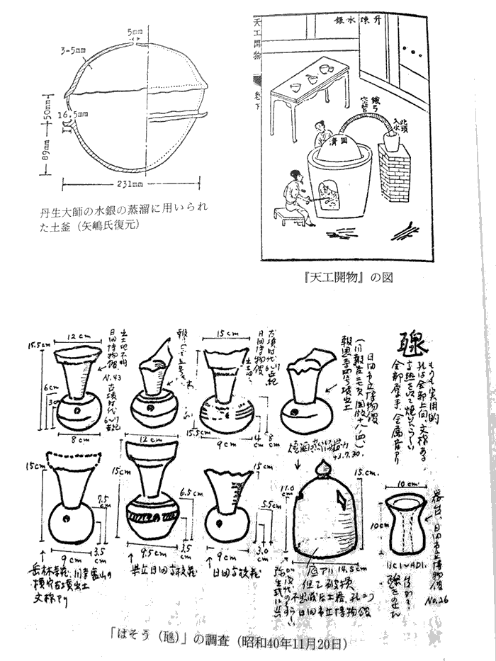 蒸留装置は、松田著『古代の朱』にあるようなものだったようですね。気密は保てないでしょうから、作業従事者は長生きできなかったでしょうね