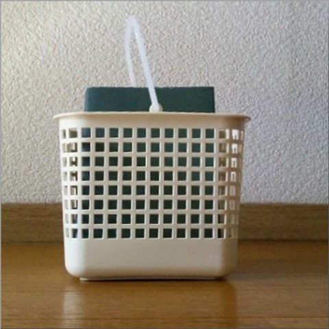浴室の横棒に引っ掛け、入浴セット籠を吊る=床に触れないので濡れなくて良き