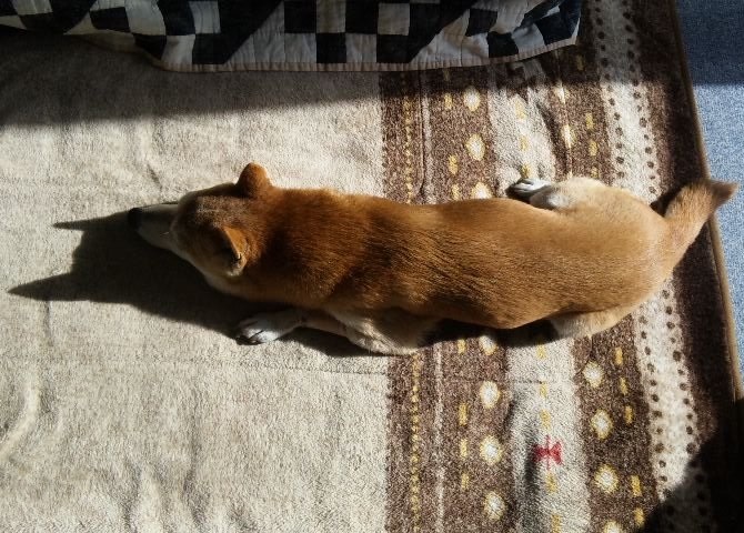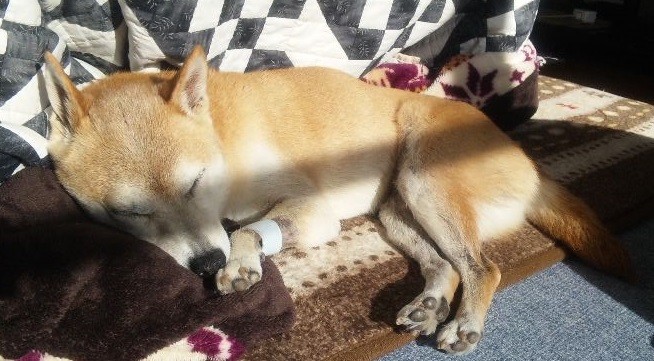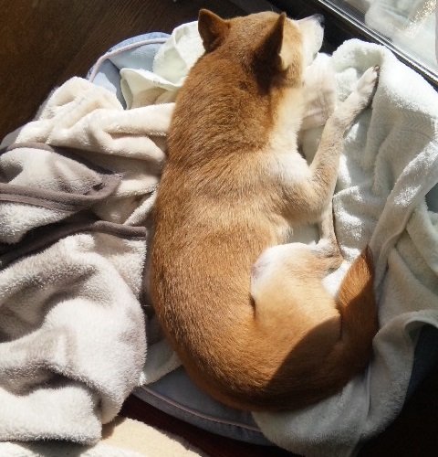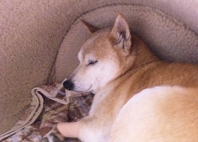 寝床でウトウト落ち着くワンコ